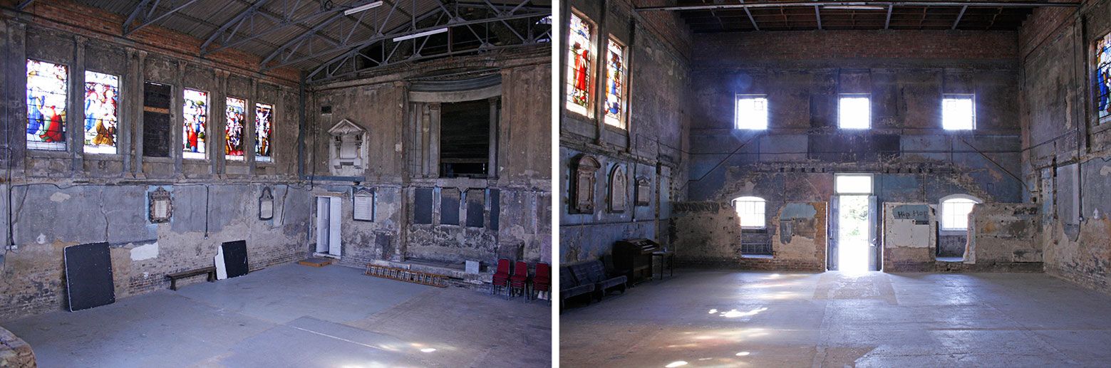 From Stoke Newington we travel south of the River again to The Asylum, an altogether different entity. This remarkably raw location with primal appeal has some amazing features and is perfect for photoshootsand filming.This old chapel space offers stained glass windows and bare brickwork as well as concrete flooring and large open spaces. If this distressed urban space is in keeping with what you’re looking for then don’t hesitate to give 1st Option a call.