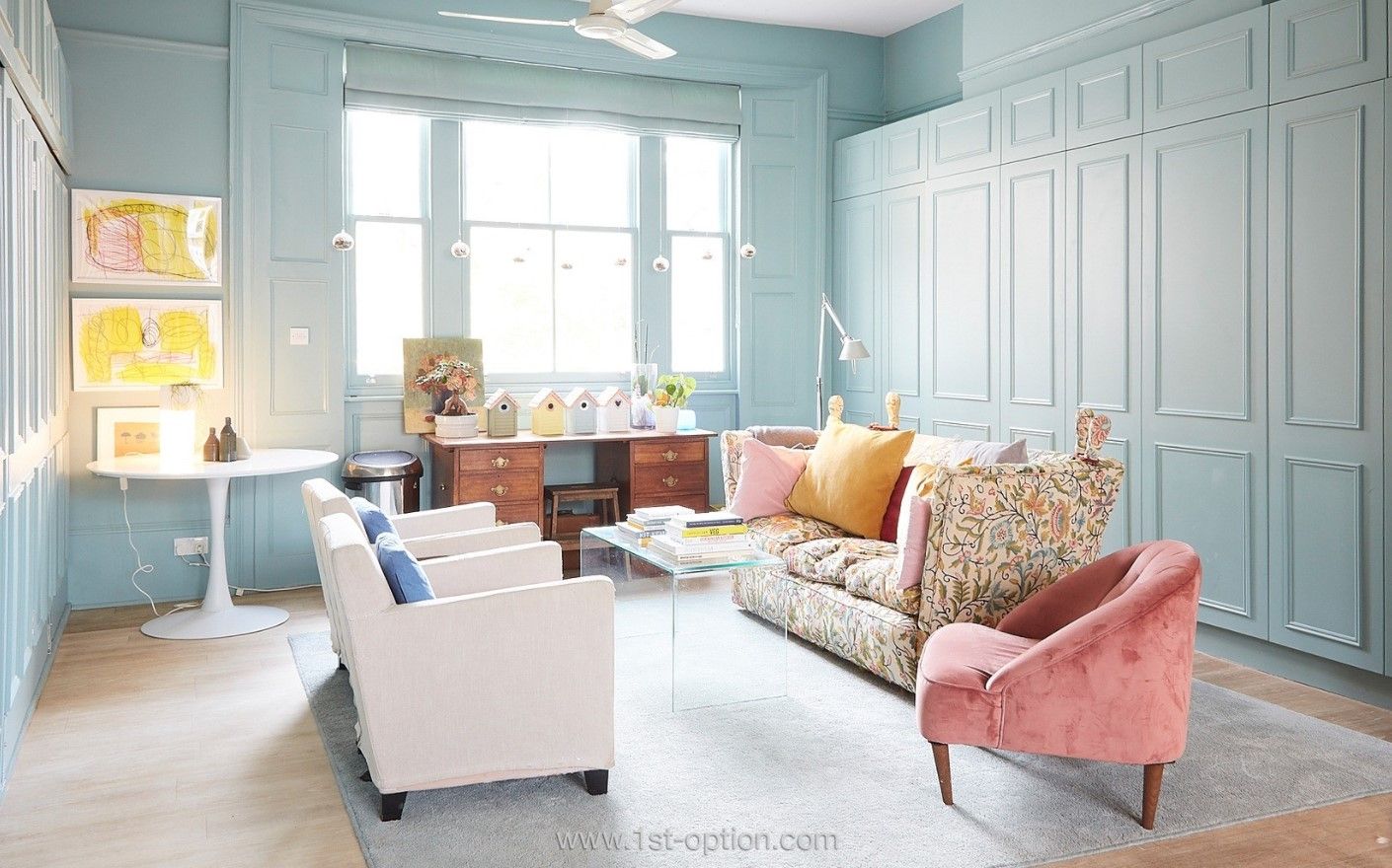 Grandmillennial style as mentioned above is about individuality and an expression of your personality, however, there are some inherent style cues to execute it properly and to a high standard. The starting point is to keep the colour palette tight and consistent with the overarching theme of the space. Pastels are a great foundation as they offer a subdued hit of colour that doesn’t swarm the room or take away from the other elements that bring the room together. Bold colours can be used, however, the main hit of colour should come from your furnishings, patterns and components that add texture. Monochromatic grey based colours can also be used but again they have to act as a platform to showcase the rest of the room. Whites and blacks as a rule of thumb don’t tend to offer very much to this unique interior design style. The key to achieving this look effortlessly and eloquently is the use of classic prints like chintz, toile and plaid, which are generally adorned upon curtains, upholstery and wall furnishings. Other elements that are crucial to a successful grandmillennial room are floral patterns, ruffles and pleats as well as a strong grasp on how to add texture to your room. If you want to take it one step further and really add your individual spin, needlepointing has made a massive resurgence in recent years and adds tons of character as well as texture to your space. The best furniture to utilise would be dark stained wood such as walnut as it adds a third dimension to the room while again not stealing the attention from the other elements. And if you want to bring the room into the 21st century, accenting the furniture with some abstract modern art adds that added touch of class.