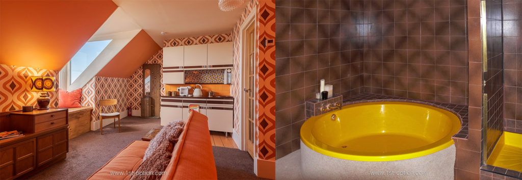 Key characteristics of the return of retro include mid-century furniture, curved and angled pieces with bold hues or bold materials such as metals and chrome. These are often complemented by specific colours like avocado green, brown, mustard yellow, burnt orange, cherry red and bold psychedelia. Pattern and texture are at the heart of the style with eye-catching wallpaper, funky lighting and wood, often adding visual weight and depth to largely open plan spaces. A special mention should also go to the palm beach style that is often associated with the trend.
