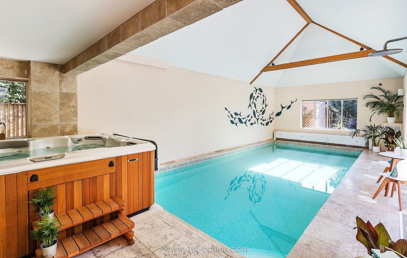 The aptly named Woodhaven is last on our list of the best pools you’re likely to find in London and the surrounding areas. With wooden furnishings quite literally running throughout the entirety of the property, the Surrey based location offers a very modern and polished take on the New England design style that is so popular around the world. When we say wood runs throughout the property, we’re not joking. The pool is even decked out with many wooden panels including on the roof and on the lavish hot tub that sits at one end. The space also benefits from tons of natural light that really elevates the luxurious aesthetic brought forward by the wooden panelling. A set of elegant tables and chairs and some well placed plants also add to the opulent character the property gives off. Due to the indoor nature of the pool, Woodhaven is perfect for a pool shoot all year round and is available now!