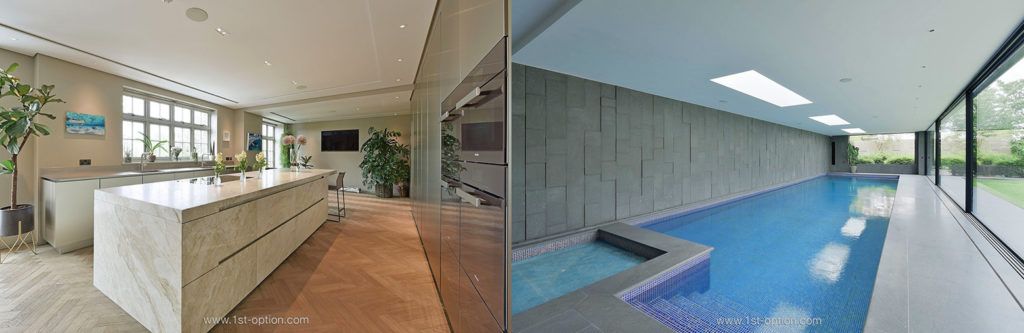 From the countryside to the city. Our second location to feature this month might not be exactly what you’d expect from a city house, but it will certainly make you stand up and take note of it. Welcome to Daytona, an immense Neo-Georgian family home, situated in the heart of North West London. Contemporary-luxe is the underlying aesthetic, with features ranging from a vast marble kitchen island, to parquet flooring found on almost every inch of the house. However, what sets this extraordinary house apart from other large family homes in London, are the one-of-a-kind details you’re not going to find elsewhere. These include the 4m wide marine reef tank that travels between two rooms, museum-quality fossils and a steam room. If this wasn’t enough to win you over, the curated South West facing garden is award winning and overlooks the 10m pool; thanks to its sliding glass doors, it has the ability to turn an indoor pool into a fabulous outdoor version. Similarly to Brook Lodge, Daytona would be perfect for small-scale filming and editorial campaigns.