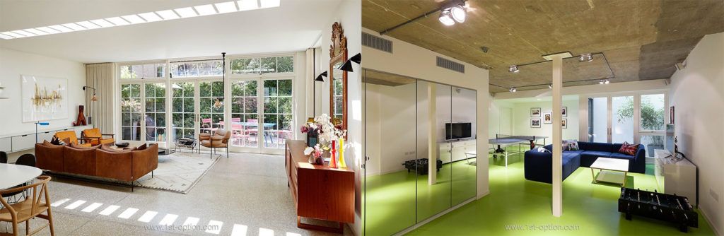 A mock arts and crafts double fronted family home, with a grey exterior and rear brick extension, Feasts, in West London, is the next property to make our list this month. Following a complete renovation, knocking down the original property and subsequently rebuilding, the property is now very open and bright, with vast lateral living spaces that give you the opportunity for creative shooting. The extensive open-plan ground floor features a kitchen, living room, dining room and study, showcasing a gorgeous blend of contemporary elements with mid-century furniture, crisp white walls and abstract artwork. One of the main attractions, and a feature that offers endless shooting possibilities is the impressive spiral staircase, with views from the bottom to the top. Another interesting shooting area undoubtedly comes from the basement, finished with quirky green flooring, chill out area, ping pong table and mini table football. The house has a modern but comfortable and inviting feel and is an extremely adaptable space, so get in touch today to book your shoot.